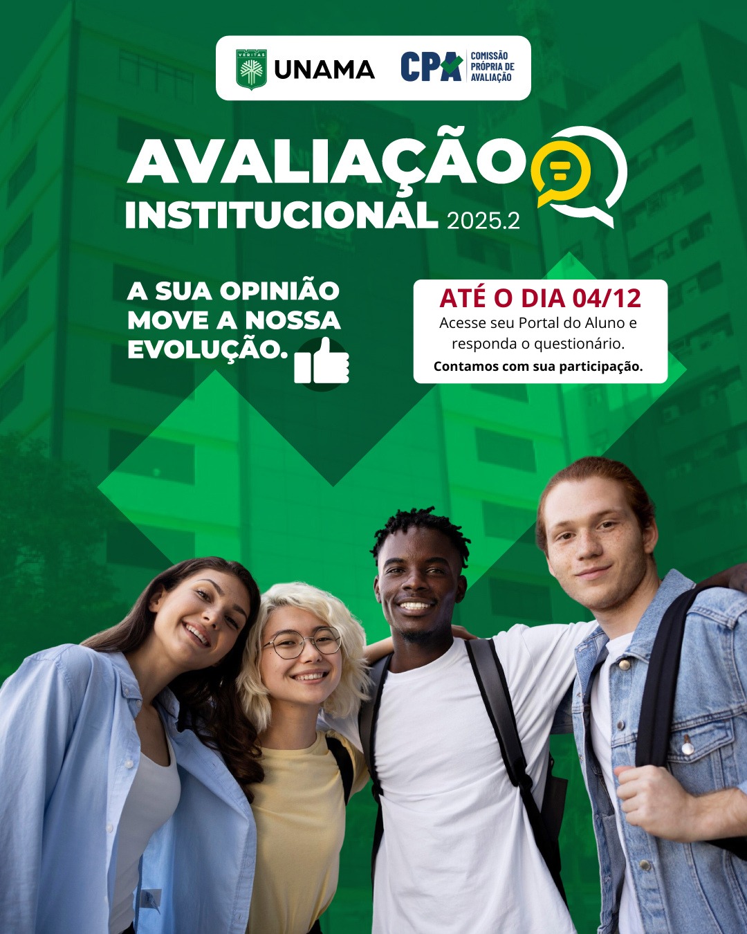 A Comissão Própria de Avaliação (CPA) do Centro Universitário da Amazônia – UNAMA Santarém convida todos os nossos colaboradores a participarem da Avaliação Institucional 2025 - corpo técnico-administrativo.