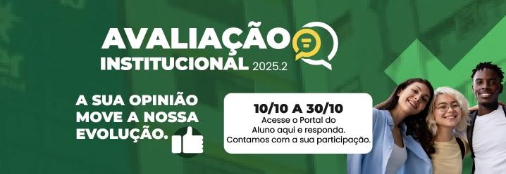A partir do dia 10 de outubro, estará disponível a Avaliação Institucional 2025.2 — uma oportunidade valiosa para refletirmos sobre os caminhos que estamos trilhando e contribuirmos com sugestões que fortalecem a nossa missão educacional.